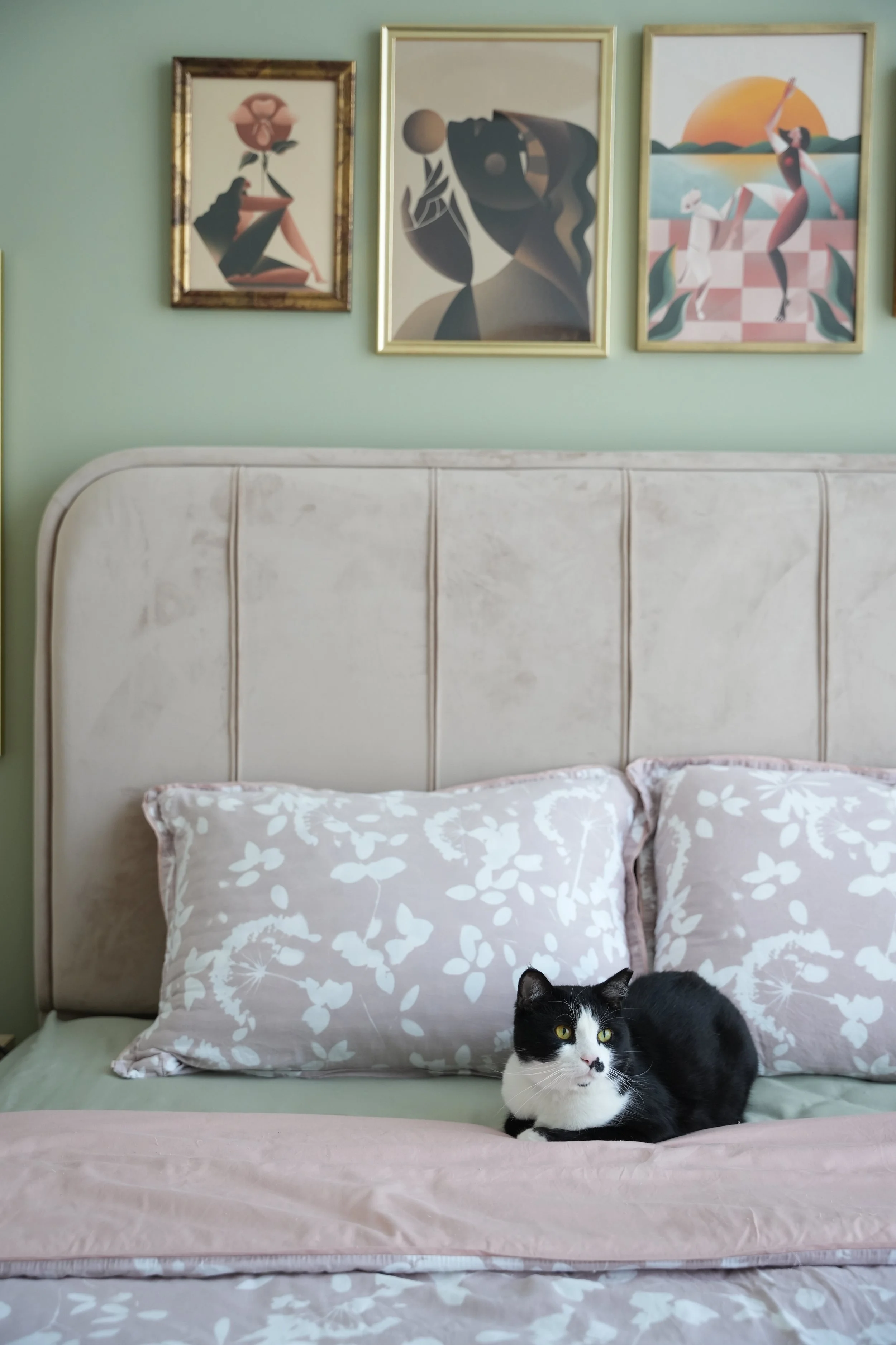 A lot of decisions were made based on a question, “What would cat do with this fabric, sofa or chair?”. Our personal favorite, “Does this need to be bolted to the wall?”. And yes, tv had to be bolted to the wall so Flo can enjoy her program :).